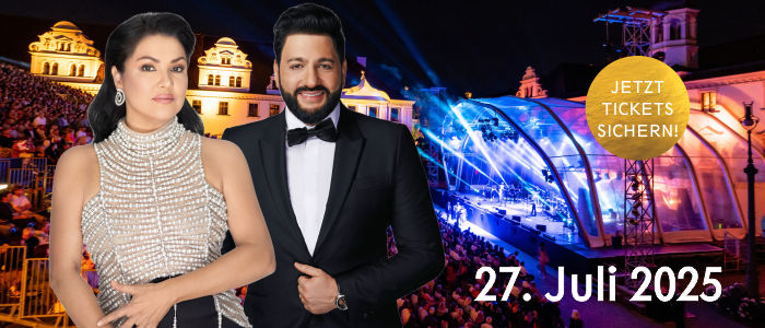 ###USER_salutation###, Musikalisches Gipfeltreffen auf der fürstlichen Schlossbühne! Erleben Sie am 27. Juli 2025 Weltstar Anna Netrebko und Star-Tenor Yusif Eyvazov – gemeinsam mit der herausragenden georgischen Mezzosopranistin Anita Rachvelishvili, dem brillanten argentinischen Bariton Fabián Veloz sowie den renommierten Hofer Symphonikern unter der Leitung von Anton Grishanin. Außerdem wird der virtuose Violinist Kurt Mitterfellner das Programm mit einem Solostück bereichern.